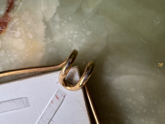 In very good condition. Some traces of use on the earthenware and metal support (see photos).