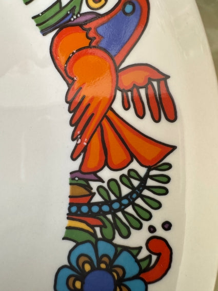 Qui ne connait pas le célèbre service Acapulco de la manufacture Villeroy et Boch ? Ses motifs colorés, colombes, fleurs et branchages, sont inspirés d'un dessin traditionnel mexicain créé par la designer Christine Reuter à la fin des années 60. Les couleurs sont typiques des années 70, délicieusement vintage !