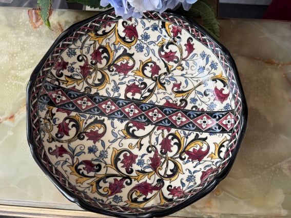 Gien earthenware dish, "Moyen Age" pattern, diameter 27 cm (10,6")